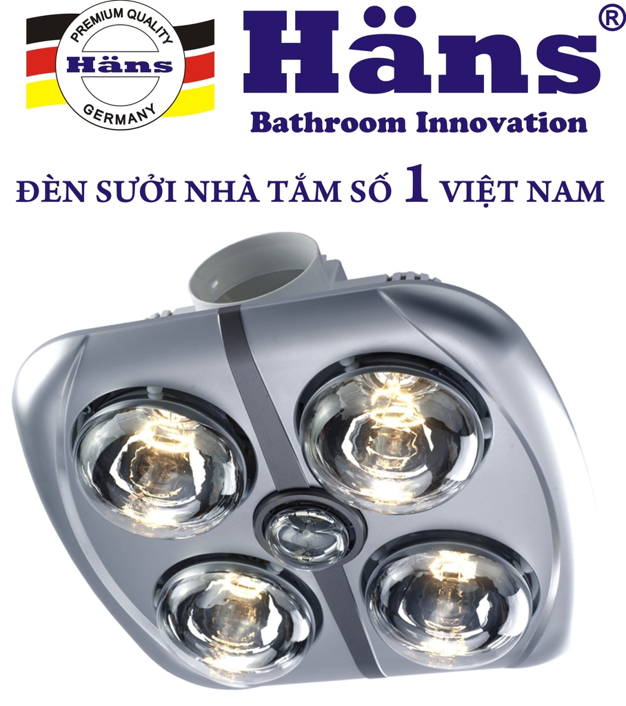 Đèn sưởi ấm hồng ngoại Hans 4 bóng âm trần với tiện ích 3 trong 1 khác hẳn với những dòng sản phẩm khác: vừa sưởi ấm vừa có hệ thống chiếu sáng đồng thời có hệ thống quạt thông gió, đèn sưởi 4 bóng âm trần hứa hẹn sẽ mang tới cho gia đình bạn những trải nghiệm thú vị trong mùa đông này