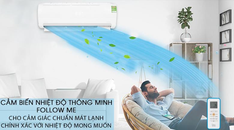 Nhờ có cảm biến nhiệt độ thông minh được tích hợp trên remote mà người dùng sẽ có cảm giác mát lạnh chính xác hơn với nhiệt độ mong muốn.
