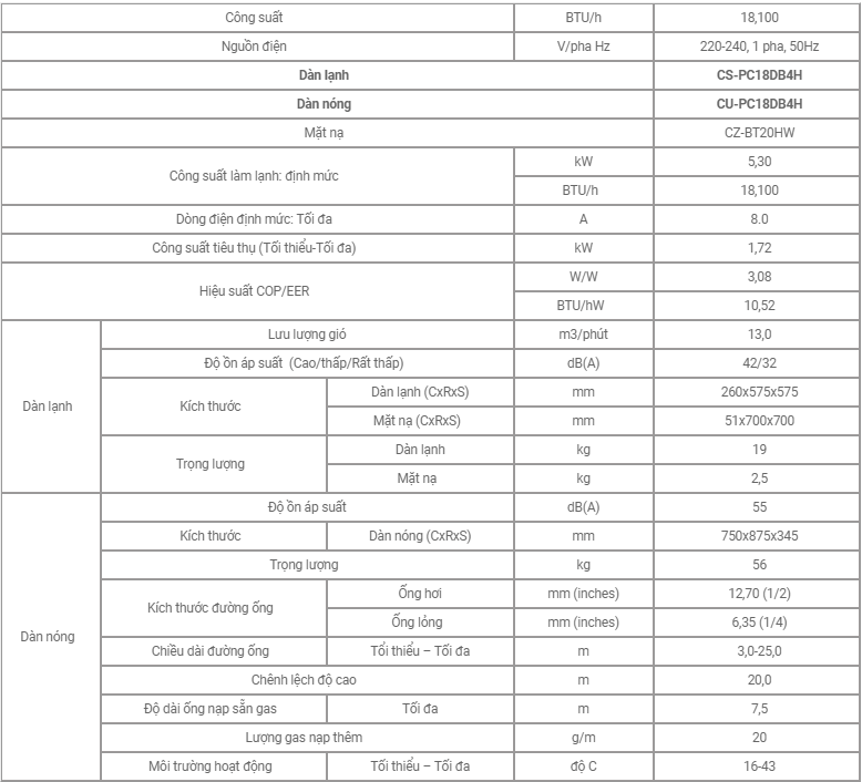 Tính đến tháng 6/2020 trên thị trường chỉ có 2 model của Panasonic PC18DB4H, PC24DB4H sử dụng gas R22. Đây là loại gas phổ biến nhất chi phí rẻ nhất cho người tiêu dùng.