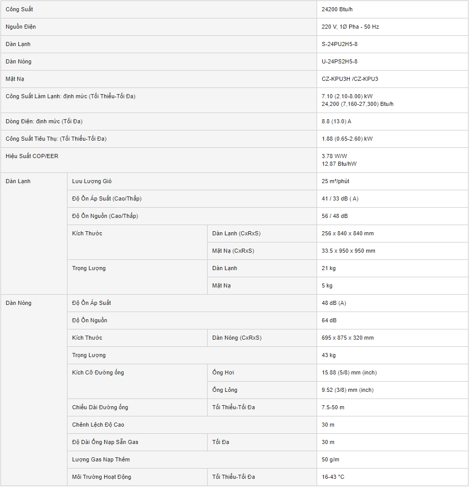 Với công suất 24.000BTU, Panasonic S-24PU2H5-8 lựa chọn phù hợp lắp đặt cho căn phòng dưới 40m2: Phòng khách, phòng họp,