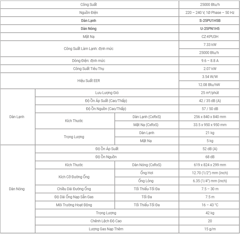 Với công suất điều hòa 24000BTU, Panasonic S-25PU1H5B lựa chọn lắp đặt lý tưởng cho diện tích dưới 40m2: Phòng khách, phòng họp, showroom...