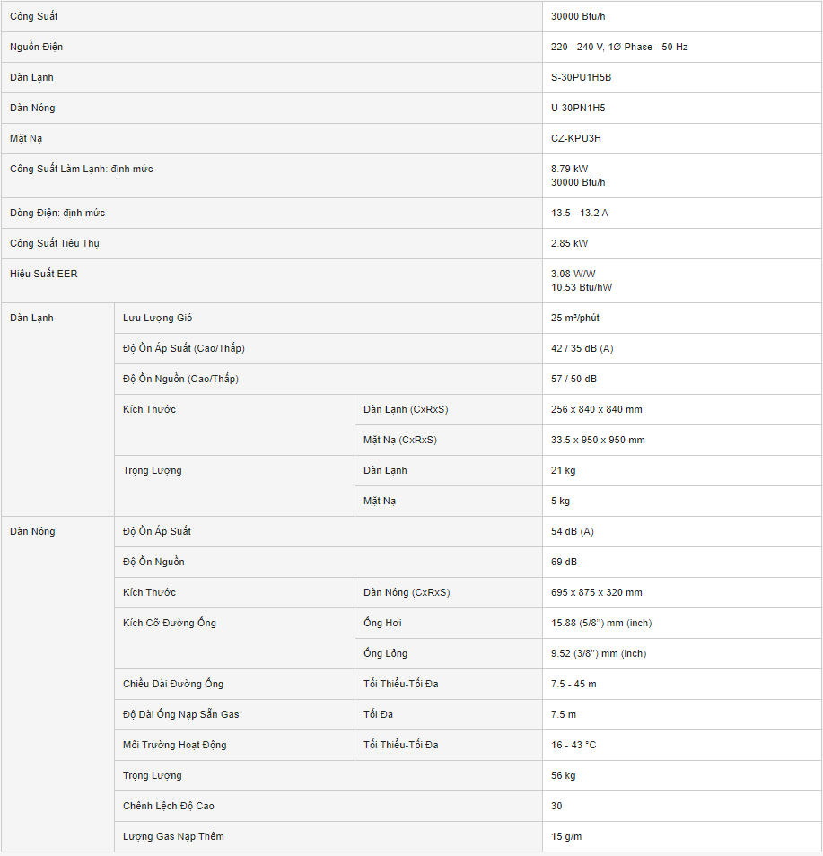 Điều hòa âm trần Panasonic S-30PU1H5B/U-30PN1H8 1 chiều 30000BTU gas R32 model mới nhất ra mắt năm 2020 mang đến cho người tiêu dùng sản phẩm chất lượng cao cấp.