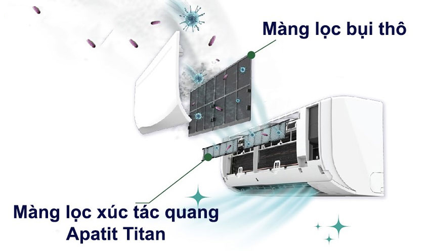 Máy điều hòa Daikin 18000 1 chiều FTV50BXV1V/RV50BXV1V được trang bị màng lọc xúc tác quang Apatit titan có khả năng lọc sạch bụi bẩn, vi khuẩn, nấm mốc và các loại mùi hôi khó chịu cùng với các tác nhân gây dị ứng như phấn hoa, lông thú nuôi, mang lại sự trong lành cho không khí trong căn phòng của bạn.