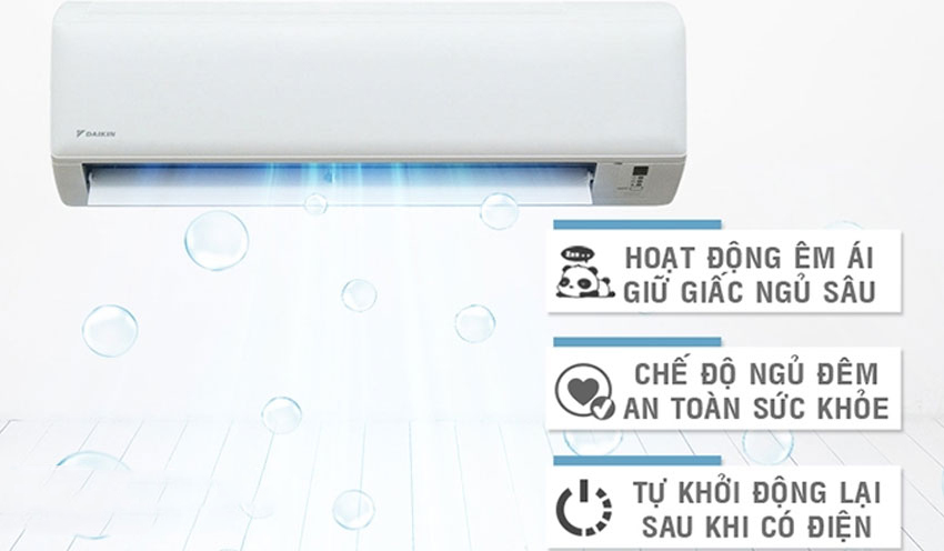 Chiếc điều hòa Daikin 18000 FTV50BXV1V/RV50BXV1V 1 chiều có máy nén vận hành êm ái, độ ồn thấp, mang đến cho người dùng không gian thật yên tĩnh để có thể làm việc hoặc nghỉ ngơi thoải mái nhất. Bên cạnh đó, chiếc điều hòa 18000btu này còn được tích hợp chế độ tự khởi động lại khi có điện.