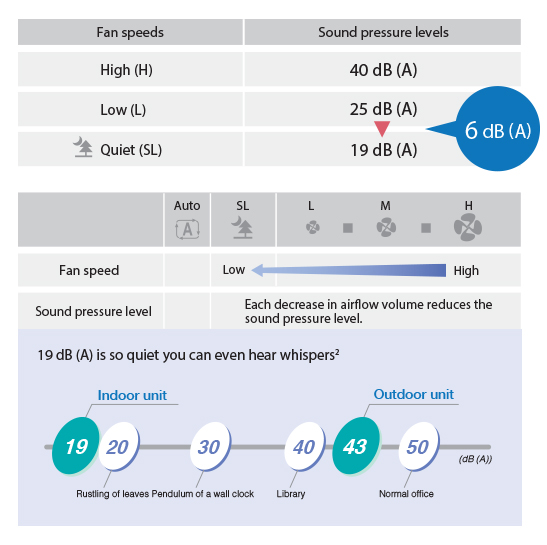 Hoạt động êm ái: Dòng máy điều hòa treo tường loại tiêu chuẩn Inverter 1 chiều lạnh cho phép lựa chọn 5 tốc độ quạt, yên lặng hoặc tự động. Cài đặt chế độ dàn lạnh hoạt động êm sẽ giúp độ ồn giảm đến 6 dB(A), mang đến cho bạn giấc ngủ ngon.