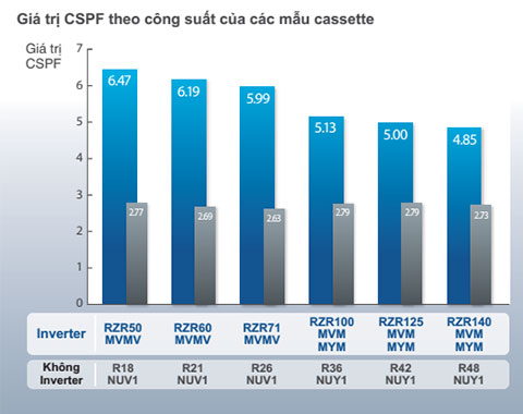 - CSPF cao :Nhờ vào sự kết hợp của các công nghệ tiết kiệm năng lượng, CSPF của sản phẩm đạt được từ 4.85 đến 6.47
