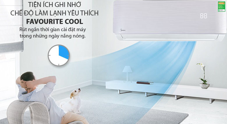 Không còn tốn nhiều thời gian điều chỉnh mỗi lần sử dụng máy lạnh, tính năng Favourite Cool của máy lạnh Midea MSAB-13CRDN8 giúp ghi nhớ chế độ làm lạnh yêu thích của bạn sau 1 lần cài đặt. Những lần sử dụng tiếp theo bạn chỉ cần kích hoạt Favourite Cool là máy lạnh đã có thể vận hành chế độ bạn cài đặt trước đó vô cùng tiện lợi