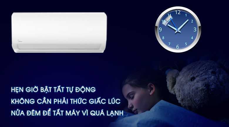 Đôi khi cảm thấy mệt mỏi với việc bạn phải thức giấc để tắt máy lạnh khi nhiệt độ phòng hạ thấp. Chức năng hẹn giờ bật tát máy sẽ giúp bạn giải quyết vấn đề này, chỉ cần với một vài thao tác đơn giản trên remote để hẹn giờ bật hoặc tắt máy lạnh. Ở chế độ này, độ ồn mà máy phát ra chỉ khoảng 26 dB, đảm bảo mang đến cho bạn một giấc ngủ yên tĩnh.