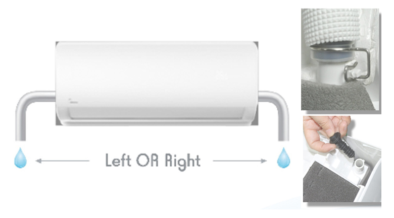 Máy lạnh Midea có thiết kế ống thoát nước bên phải hoặc bên trái cho máy, đảm bảo sự thuận tiện cho người dùng trong việc lắp đặt.