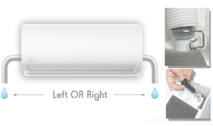 Máy lạnh Inverter Midea có thiết kế ống thoát nước bên phải hoặc bên trái cho máy, đảm bảo sự thuận tiện cho người dùng trong việc lắp đặt