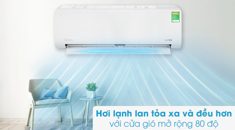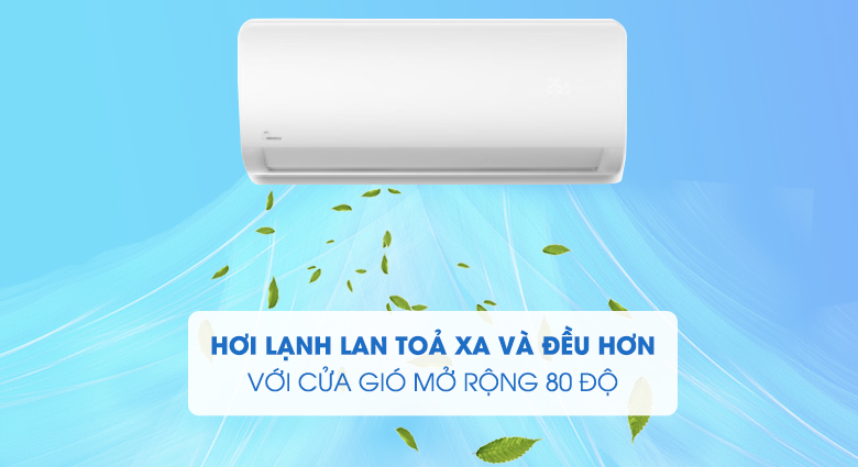 Máy lạnh này còn có cửa gió thiết kế linh hoạt, có khả năng mở rộng từ 60 độ lên đến 80 độ, giúp gia tăng lưu lượng gió được thổi ra, mang hơi lạnh lan toả xa và đều hơn khắp căn phòng của bạn