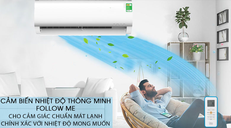 Chức năng này sẽ tự động điều chỉnh hướng gió đến vị trí xung quanh remote. Nhờ có cảm biến nhiệt độ thông minh được tích hợp trên remote mà người dùng sẽ có cảm giác mát lạnh chính xác hơn với nhiệt độ mong muốn.