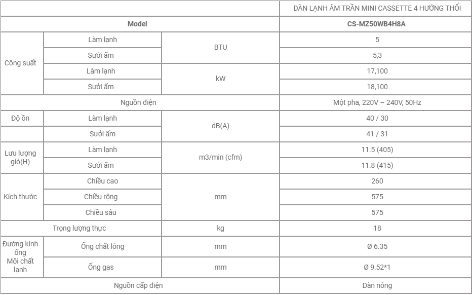 Điều hòa Panasonic multi âm trần CS-MZ50WB4H8A mặt nạ panel màu trắng thiết kế vuông mang đến không gian sống sang trọng, đẳng cấp.