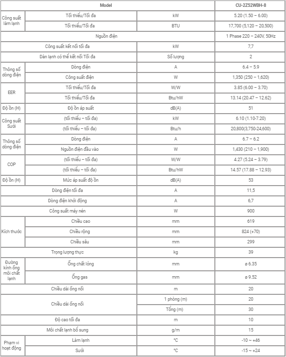 Hơn nữa: Điều hòa multi 2 chiều inverter Panasonic CU-2Z52WBH-8 kết nối tới 2 dàn lạnh nhưng chỉ với duy nhất 1 dàn nóng nhờ đó giúp tiết kiệm thời gian lắp đặt & chi phí bảo dưỡng vệ sinh đình kỳ hàng năm.