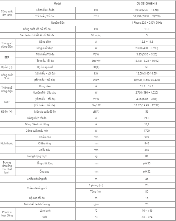 Dàn nóng điều hòa multi Panasonic CU-5Z100WBH-8 2 chiều 34000BTU model mới nhất 2021 với nhiều tính năng công nghệ đẳng cấp đang chờ Bạn trải nghiệm.