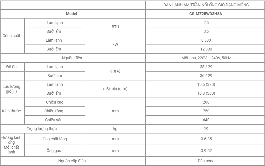 Với những ưu điểm trên CS-MZ25WD3H8A xứng đáng là một trong những sự lựa chọn hàng đầu khi lắp đặt điều hòa multi cho chung cư, nhà riêng, văn phòng cỡ nhỏ.