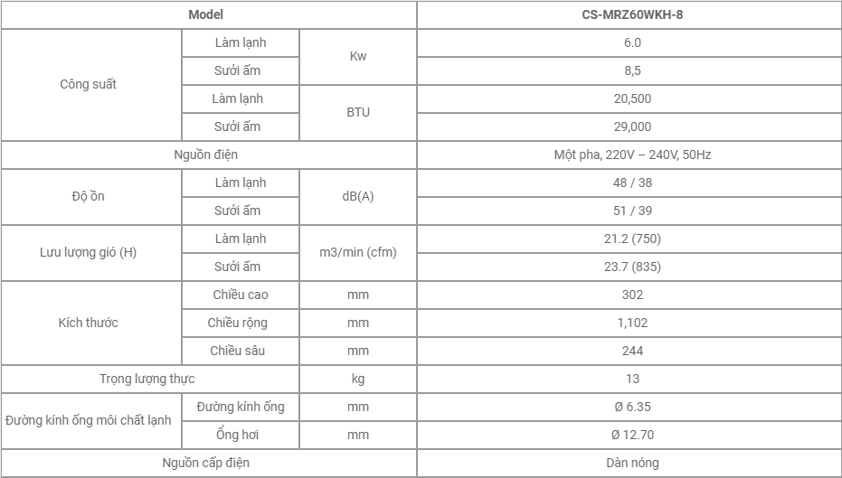 Điều hòa multi treo tường Panasonic CS-MRZ60WKH-8 thiết kế sang trọng, đường nét tinh tế, hiện đại, màu trắng trang nhã tôn lên vẻ đẹp đẳng cấp cho căn phòng của Bạn.Với công suất điều hòa 21000BTU, multi Panasonic CS-MRZ60WKH-8 lựa chọn lắp đặt cho phòng có diện tích <12m2: Phòng ngủ, phòng đọc sách,...
