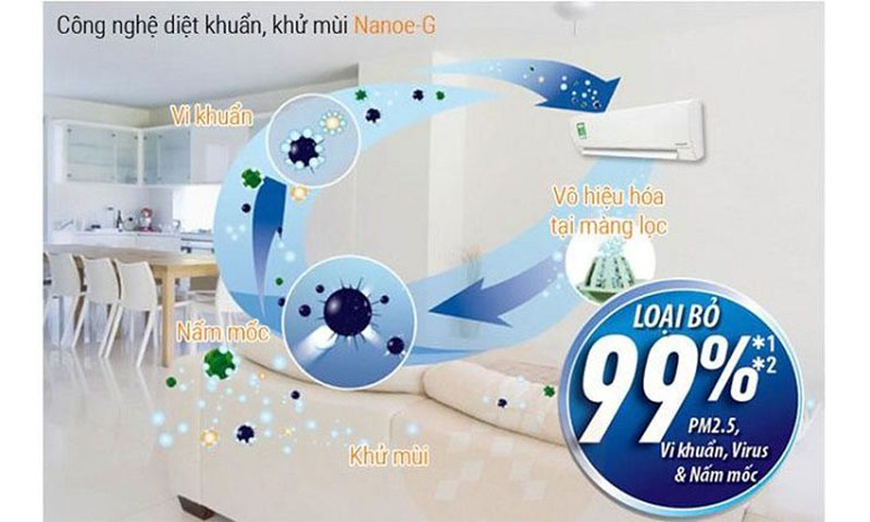 Với phương châm “Không Khí phải sạch – Sống phải chất”, Panasonic đã trang bị cho Điều Hòa Panasonic 12000btu 1 Chiều CU/CS-N12WKH-8 công nghệ lọc Nanoe-G độc quyền của hãng giúp loại bỏ các phần tử gây hại trong không khí như: virus, vi khuẩn, nấm mốc, khử mùi bám trên đồ đạc mang đến một không gian sống sạch hơn.