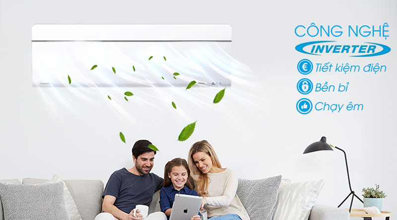 - Công nghệ Inverter - tiết kiệm điện, vận hành êm, làm lạnh sâu và hơi lạnh lan tỏa đều.