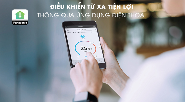Điều hòa được trang bị hệ thống wifi kết nối với điện thoại thông minh qua ứng dụng Panasonic Comfort Cloud giúp người dùng có thể điều khiển và theo dõi các hoạt động của máy từ xa một cách tiện lợi, nhanh chóng.