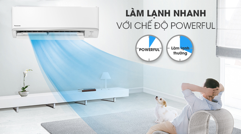Máy lạnh Panasonic được trang bị tính năng làm lạnh nhanh Powerful giúp không gian mát lạnh gần như ngay lập tức sau khi mở.