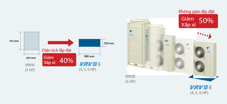 Mỏng, nhẹ đủ dãy công suất: phù hợp với văn phòng nhỏ và cửa hàng với công suất 4,5 và 6 HP.