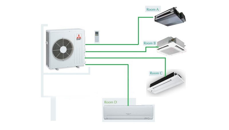Máy máy lạnh Multi sẽ là giải pháp phù hợp cho các căn hộ chung cư hay các dãy trọ có rất phòng nhưng diện tích ban công lại hạn chế.
